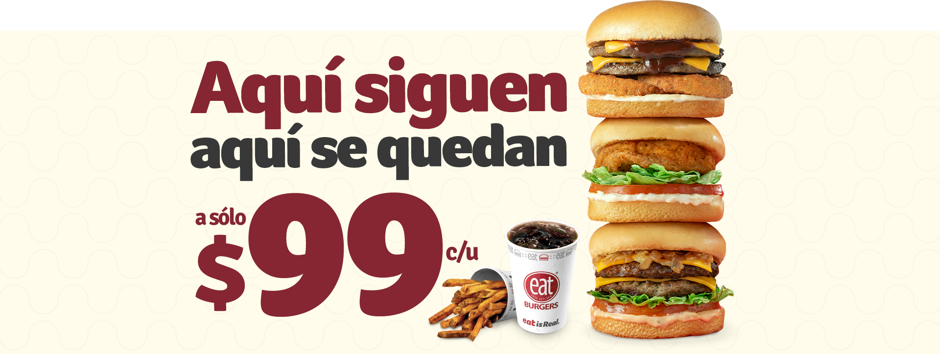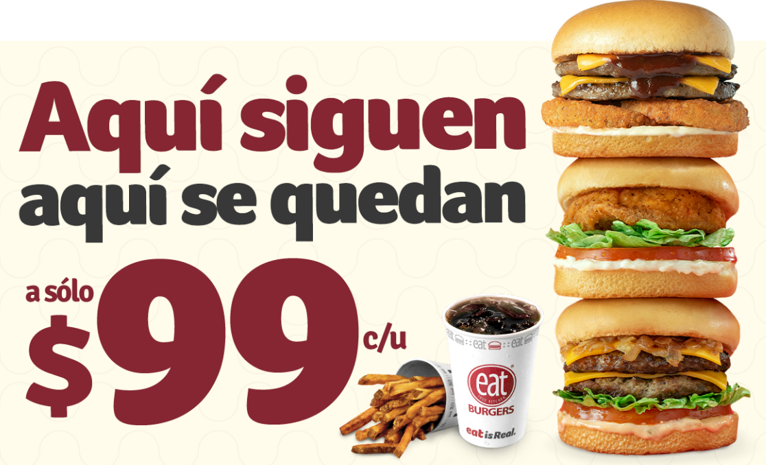 acompañada de bebida y papas únicas. Tu orden, preparada al momento.