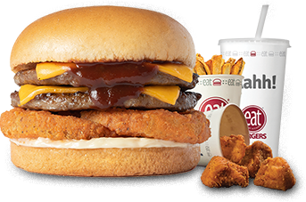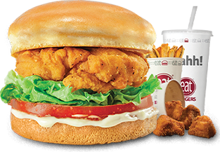 acompañada de bebida única, papas únicas y ¡6 piezas de Chick’n Pops!